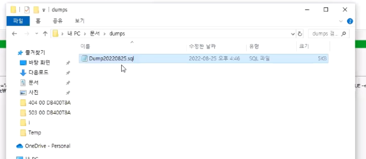 위와 같이 하면 지정된 경로에 백업파일이 생성됨.(아래 그림)