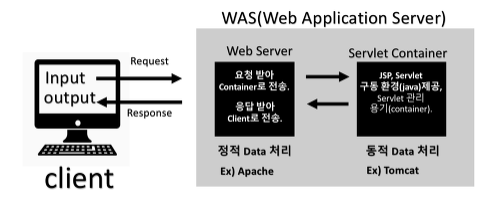 와스와 웹 서버와의 차이의 핵심은 이 컨테이너 기능(웹서버 + 서블릿 )이 가능한가 / 불가능한가이다.