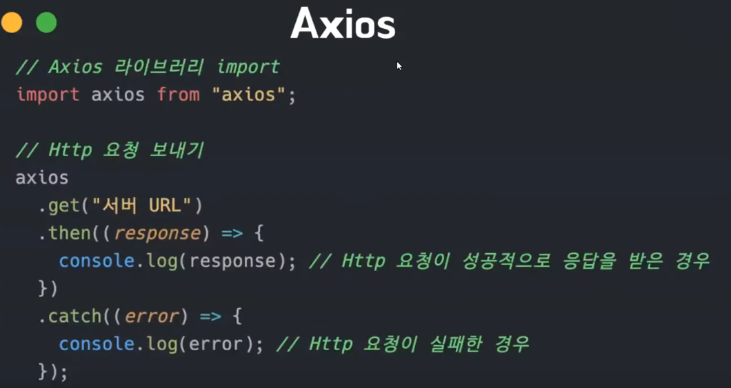 Axios의 클라이언트에서 XmlHttpRequest를 사용한다. 반면 Axios의 서버에서는 네이티브 Node.js의 http모듈을 사용한다.