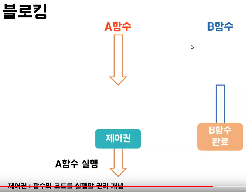 블로킹/논블로킹? 제어권이 어느 함수에 있는가. 처리되어야 하는 작업 하나가 전체적인 작업의 흐름을 막는지로 구분.