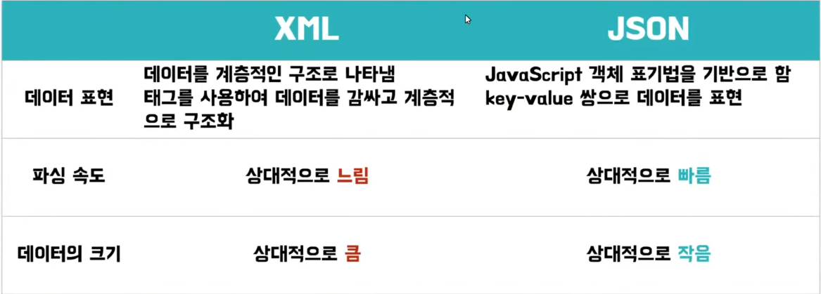 - Asynchronous Javascript And XmlHTTPRequest(비동기식 자바스크립트와 XMLHTTPRequest)의 약자