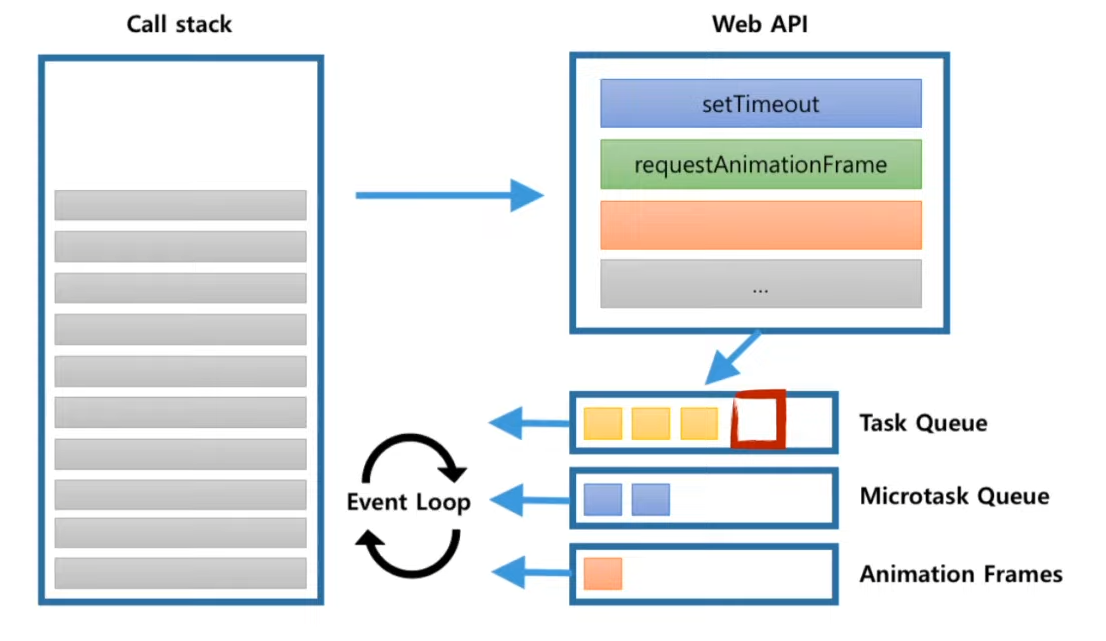 여기서 의문!!!! JS는 싱글스레드로 동작하는데 어떻게 비동기적으로 동작할 수 있게 되었나?