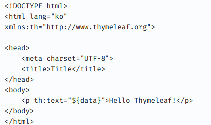 아래 자체가 Thymeleaf템플릿 엔진임. 확장자명이 .html이고 그 형식또한 html과 유사함.
