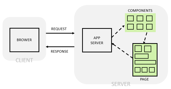- 서버에서 HTML(데이터가 반영된 Template)을 그린다.