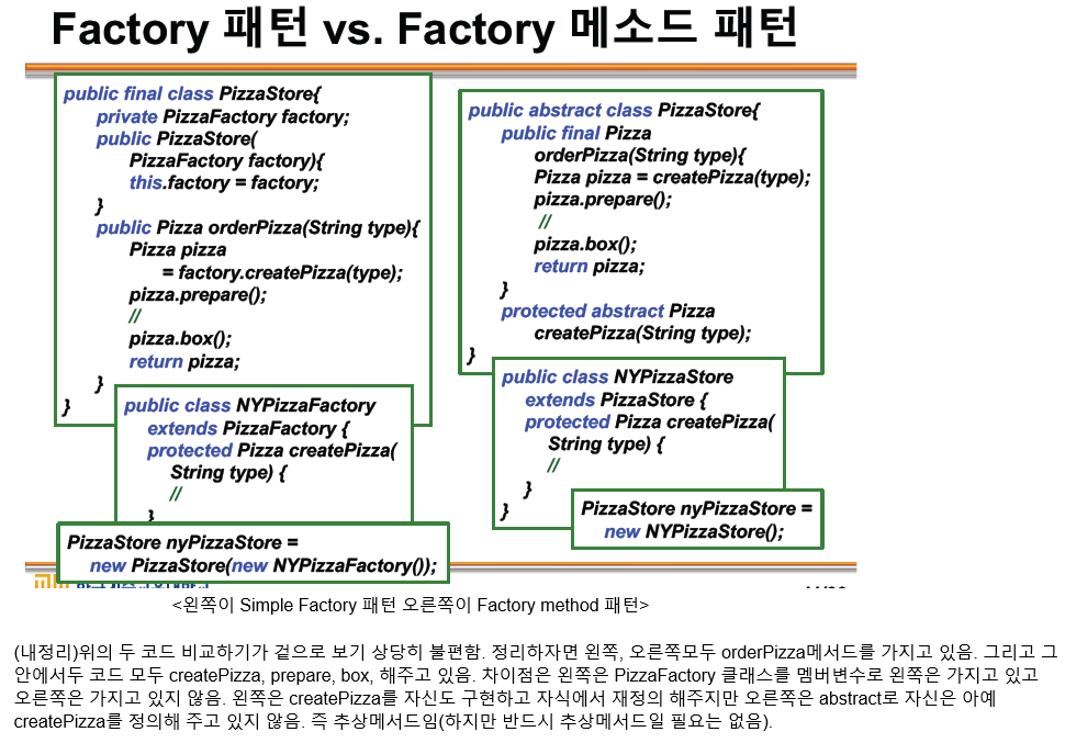 Simple factory Pattern 은 방법1을 사용하고factory method pattern은 방법2를 사용함.