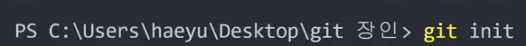 해당폴더(git장인)에서 코드짜고 파일 만드는 것 모두를 검사합니다. 이 명령어로 해당폴더에서는 이제부터 깃을 사용할 수 있게 되는 것입니다.