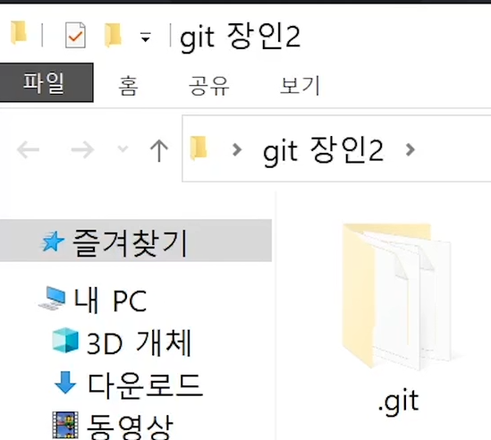 아래가 바로 내컴퓨터안에서 git이 파일을 기록해두는 장소인 repository임(숨김파일보기 설정해야함)
