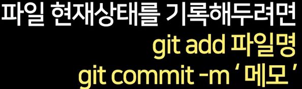 왜 굳이 2개의 명령어로 하지? 하나로 하지 않고? 어떠한 폴더안의 파일은 굳이 버전관리를 하지 않아도 됨. 예를들면 사진 파일같은거는 변하지 않기 때문에 버전관리를 할 필요도 없어. 따라서 사진과같은 파일도 함께있는 폴더안의 특정파일, 내가 버전관리하고자 하는 파일을 git add로 고르고 고른파일의 기록명령은 git commit -m 'message' 함.