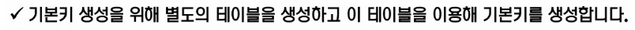 위와같이 기본키를 위한 테이블과 기본 테이블이 생성된 후에
