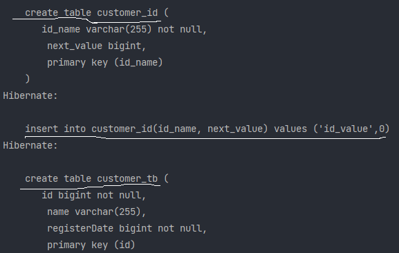 기본키로 사용할 id를 가져옴(select). 가져오는 것에서 끝나지 않고 다음 키값을 미리 지정 해주기 위해서 기본키 값의 update(set next_value=?)가 일어남.next_value는 valueColumn의 이름임(valueColumnName)