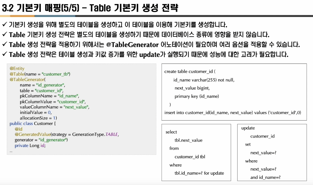 기본키 생성 테이블을 만들면 거기서 pk가 될 id를 가지고 와서 우리가 만들고자하는 DB의 레코드 데이터는 객체정보+기본키 생성 테이블에서 가져온 pk로 구성되게 됨.