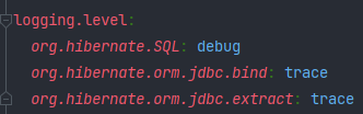 와 같이 yml에 log에 관해서 이렇게만 해 주면 id는 물론 각각의 변수의 binding이 물려서 hibernate로 출력이 되었다고 한다. 하지만 시간의 흐름에 따라 버전이 변하고 버전의 변화는 위와 같은 명령어의 변화로 이어진다. 신나게 구글링 한 뒤에야 명령어가 변하여 이제는