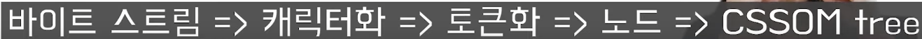 이 과정을 CSS또한 HTML처럼 모두 똑같이 겪고 그 결과물로 CSSOM(쏨) tree를 그리게 됨.
