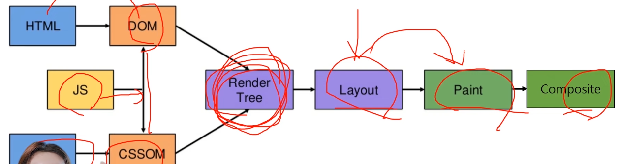 Render Tree가 완성되면 그 완성된 트리를 가지고 여러장의 종이에다가 그것을 그리는데 그 각각의 종이를 layout이라고 생각하면됨. 그 후 그 각각의 페이지에 painting을 한후에 painting된 여러페이지(layout)를 합쳐서 최종 완성본인 Composite이 나옴.