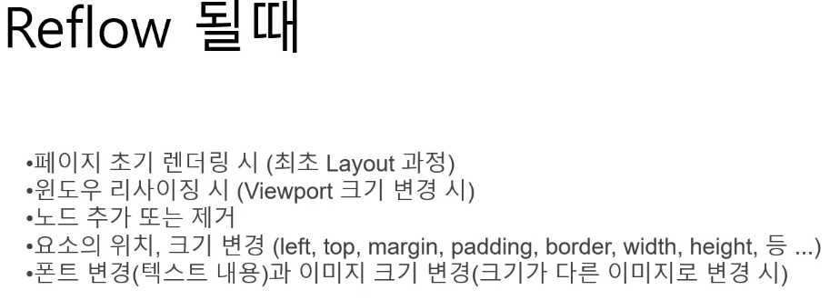 Layout이 다시 그려질때 즉, Reflow되는 경우는 아래와 같다.