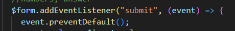 $form.addEventListener("submit", (event) => { });와 같이 코딩한 것임.