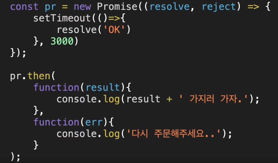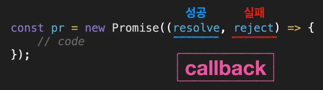 //바로 이 자리에 실패할 수도 있고 성공할수도 있는 내용이 오게됨. 만약 성공하면 조건문이용해서 그 자리에 resolve함수호출하는 것이고