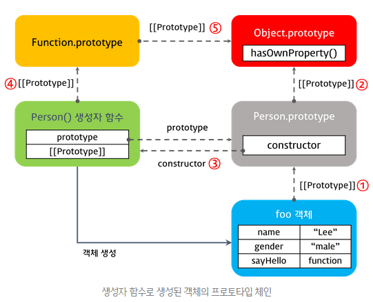 (여기서 잠깐!!! 객체리터럴과 함수생성자간에 프로토타입을 다루는 차이는 순전히 아래 프로토타입 체인이 다르기 때문이다. 이 그림을 잘 기억해 두자.