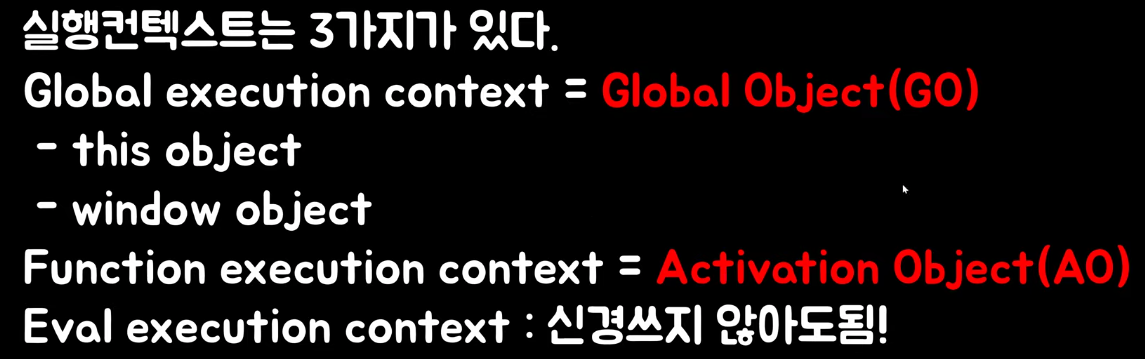 (내생각)실행컨텍스트: 코드 실행에 필요한 환경(조건이나 상태)을 모아둔 객체(즉 스코프역시 코드 실행에 필요한 조건이나 상태를 모아둔 영역이므로 스코프가 실행컨텍스트와 같은 의미일 수 있는것이다)