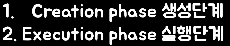 실행컨텍스트는 크게 생성단계(코드로딩, 준비단계)와 실행단계(코드를 실행하는 단계)로 나뉘어 진다.
