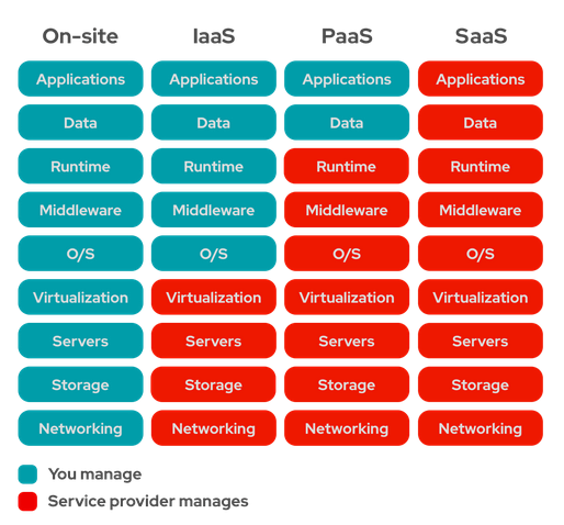 IAAS(Infra Structure as a service), PAAS(Platform as a service) , SAAS(Software as a service) 의 차이점을 한 눈에 아래와 같이 파악할 수 있다.