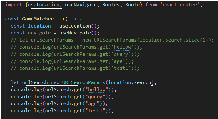 2. hook을 이용한 url 쿼리스트링 가져오기. react router v6로 변경되면서 아래와 같은 react-router라이브러리에 있는 useLocation 훅함수와 브라우저에서 제공되는 URLSearchParams생성자함수가 사용된다.