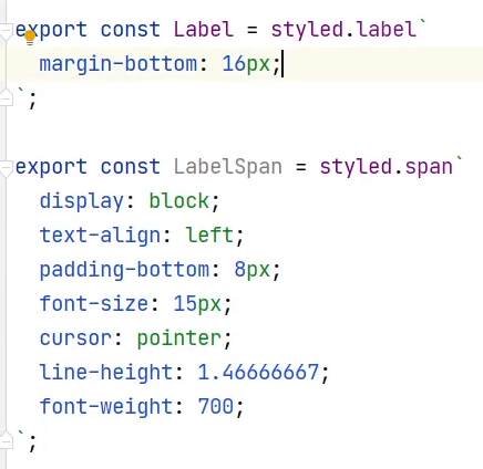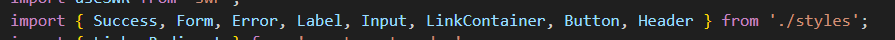 그리고 마지막으로 styled, Emotion라이브러리를 사용하는 CSS in JS 방식이 있습니다!! (말그대로 CSS내용의 코드가 JS(여기서는 tsx)파일에 기록됨(styles.tsx)
