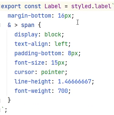 왜 굳이 '>'(꺽쇠) 를 사용해 가면서 코드를 복잡하게 만드나? 변수명(컴포넌트 명)을 줄이기 위해서 입니다. Label, LabelSpan이렇게 2개를 만들지 않고 Label안에 > 를 이용하여 자식컴포넌트를 사용하는 것입니다.