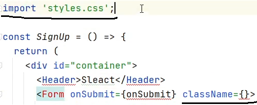 2. 다음으로는 css모듈을 활용하여 css라이브러리를 import하여 컴포넌트의 속성에 className을 주어 className과 import된 css라이브러리를 연결하는 아래와 같은 방법(아래와 같이 css파일을 import 하여 사용하는 것을 확인할 수 있다. 이것이 특이점!!!)