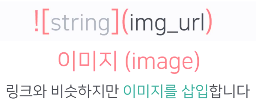 4. 링크와 비슷하게 느낌표를 하나 추가해 줌으로써 이미지를 삽일 할 수 있음. 이미지의 너비와 높이는 조절할 수 없음. 조절이 필요하면 HTML사용해야 함.