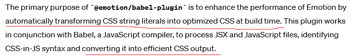 https://www.npmjs.com/package/@emotion/babel-plugin 이 공식문서에서 @emotion/babel-plugin 에 관하여 해석하고 있는 상황.