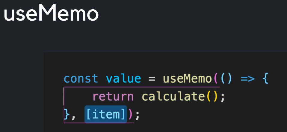 대부분의 리엑트 컴포넌트는 state, props의 변화로 수많은 랜더링을 거칩니다. 컴포넌트가 랜더링 될때 마다 value라는 변수가 초기화됨. 만약 calculate라는 함수가 무거운 함수면 굉장히 비효율적인 행위가 계속되는 것. 이러한 상황을 useMemo를 사용하여 memoization을 해주면 간편하게 해결가능함. useMemo는 처음 계산된 결과값을 메모리에 저장하여 component가 반복적으로 랜더링되더라도 계속해서 calcultate가 호출되지 않고 이전에 계산된 결과값을 메모리에서 꺼내와서 재사용하게 해줍니다.