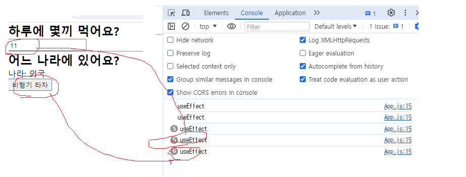 useEffect는 component life cycle과 밀접하게 연관됨. 2번째 인자로 아무것도 안주면 componentDidUpdate의 역할을, 빈배열을 주면 componentDidMount의 역할을 함.
