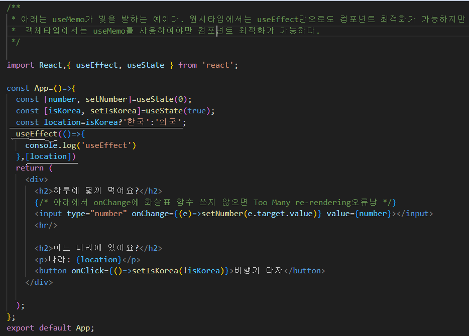 이러한 문제상황(객체를 값으로 갖는 변수)을 효과적으로 해결할 수 있는 것이 useMemo이다.
