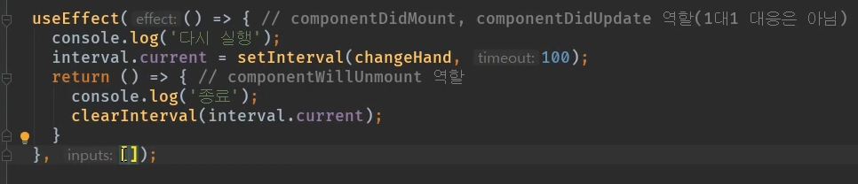 마지막으로 남기고 싶은 내용은 훅에서 라이플사이클이라고 하면 useEffect를 생각하면 된다는 것이다.