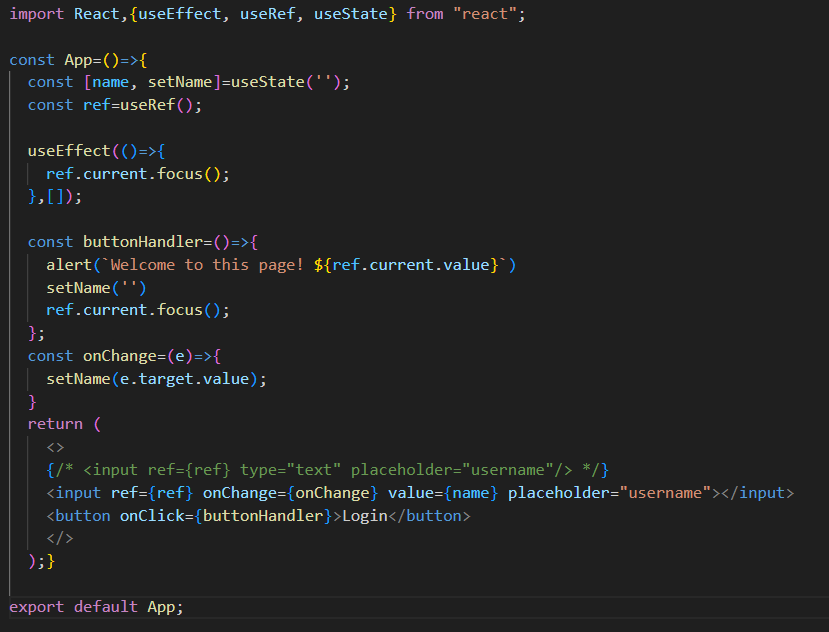 <input ref={ref} onChange={onChange} value={name} placeholder="username"></input>