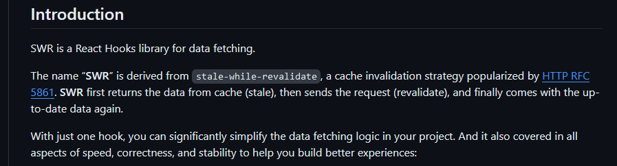 SWR깃헙: https://github.com/vercel/swr(Readme.md꼭보기)