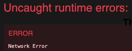 cors에러라고 뜨지 않아도 단순히 network 오류여도 cors에러일수 있다. 정말 이렇게 어떠한 에러에서 뱉어내는 에러 메시지에 생뚱 맞은 해결책이 연결되어 있다... 방법은 없다. 구글링을 하는 것밖에. 오류메시지를 그대로 적고 그 오류에 어떠한 해결책이 있는가를 검색하는 방법뿐이 없다. (오류 메시지에는 cors에 관한 언급이 전혀 없었다. 하지만 나는 그 오류가 무엇 때문에 생긴것인지 모르므로 모든 가능성을 열어두어야 하고 모든 가능성을 열어두면 오류 해결에 많은 시간이 걸리니 구글링이 답이라는 것이다)