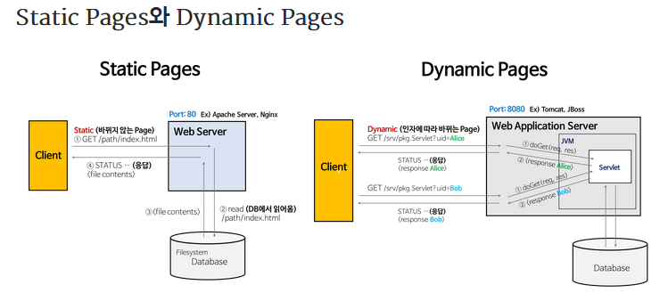 웹 페이지는 정적 컨텐츠와 동적 컨텐츠가 모두 존재한다.