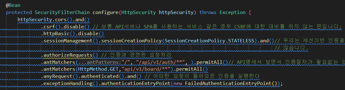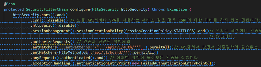 이제 앞서 작성했던 본 보안 설정(SecurityConfiguration) 클래스 코드에서