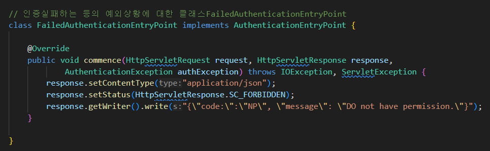 위와 같은 fail Response가 있는데 이것을 구현한 것이 아래코드의 response.setStatus(HttpServletResponse.SC_FORBIDDEN);이다.