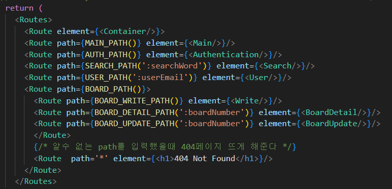 이후 이를 App.tsx에 적용하면 아래와 같음. 기본적으로 각각의 PATH는 const이기 때문에 가능한 것이다.
