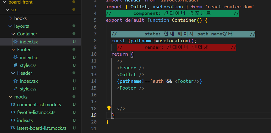 react-router-dom에는 Outlet과 useLocation이라는 훅이 있다. Outlet의 쓰임은 다음과 같다.