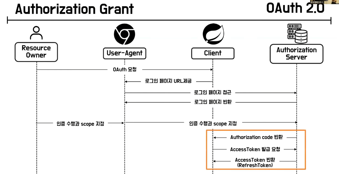 (User-Agent는 ResourceOwner가 인증을 수행하게 해주는 매개체로 간단히 크롬 브라우저라고 생각하면 된다)