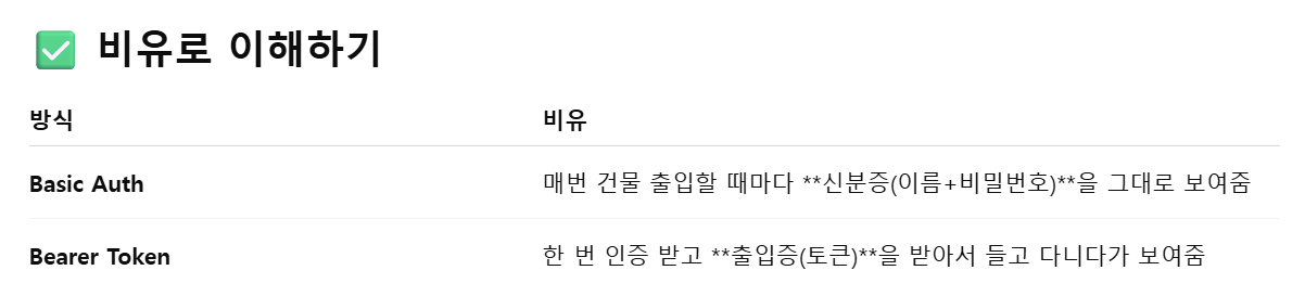 우리는 프로젝트에서 2. Bearer Token 인증방식을 사용하게 됩니다.