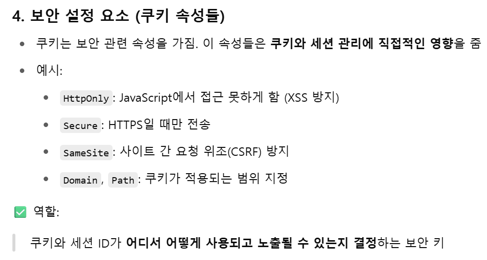 4. 그 외 방법으로는 API Key를 사용한 방식(키를 발급받아 키를 포함하여 서버에 전송하는 방식이다), 세션 기반 방식(Session based Authentication)(내가 알고 있듯이 HTTP프로토콜은 상태를 유지하지 않는다(Stateless)따라서 서버에서 생성된 세션ID를 클라이언트에 전달하면 매번 클라이언트가 요청할 때마다 이 세션ID를 쿠키안에 포함시켜 HTTP헤더 부분에 실려서 서버로 인증이되어 요청을 보내게 됨)등이 있다.