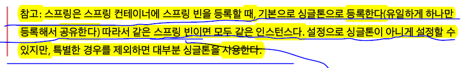 보통은 생성자를 통한 의존성 주입이 권장되고 많이 사용됨. 또한 Bean 컨테이너에 등록하게 하게끔 하는 @Controller, @Service, @Repository, @Component어노테이션을 클래스에 붙이고 위와 같이 생성자 혹은 멤버변수 혹은 setter에 @Autowired를 붙이면 의존성이 주입됨(@Component, @Controller, @Repository, @Service 가 붙은 클래스는 모두 스프링 컨테이너에서 객체를 생성(new)하여 컨테이너에 등록을 합니다)