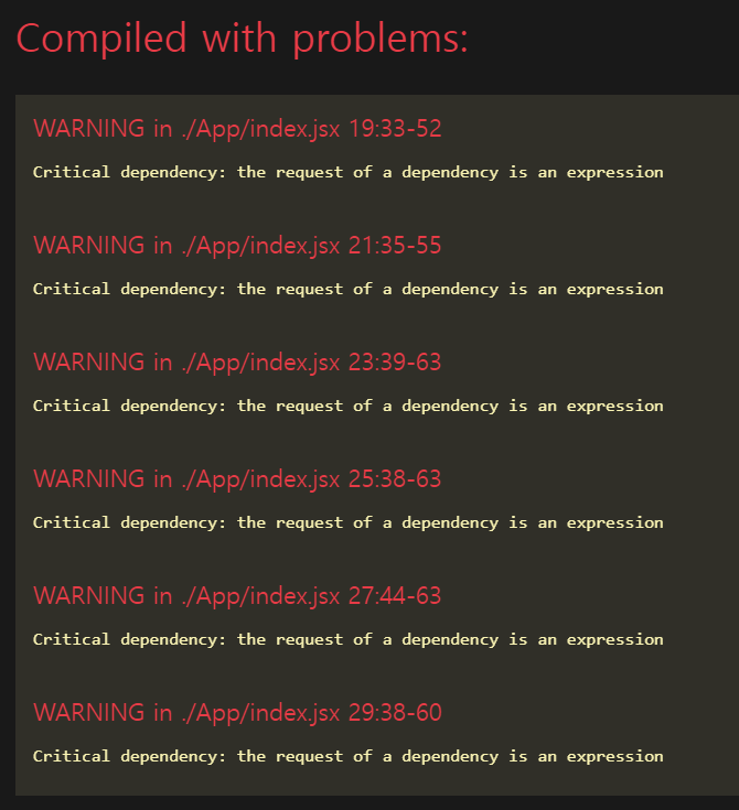 Critical dependency: the request of a dependency is an expression 라고?? 한국어로 바꾸어 말하면 "심각한 종속성: 종속성 요청이 표현식입니다."