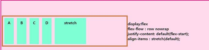 flex-derection이 row(가로 배치)일때는 왼쪽에서부터, column(세로배치)일때는 위에서 부터정렬된다.