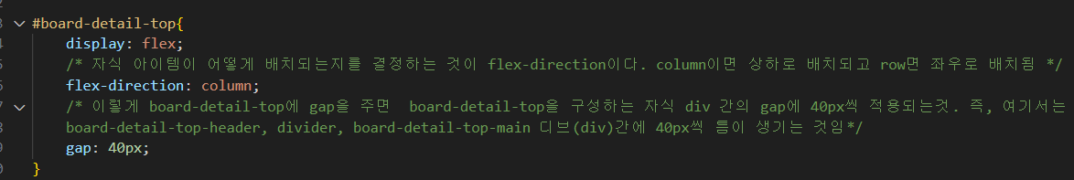 1. flex-direction: 자식 아이템들의 배치 방식과 관련된 속성이다. 값으로 row가 오면 왼쪽부터 오른쪽으로 차례로 배치되고, 값이 column이면 위에서 부터 아래로 배치된다.